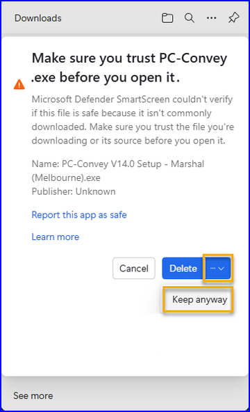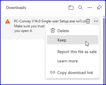 If you see that message, click on the 3 dots and select "Keep":